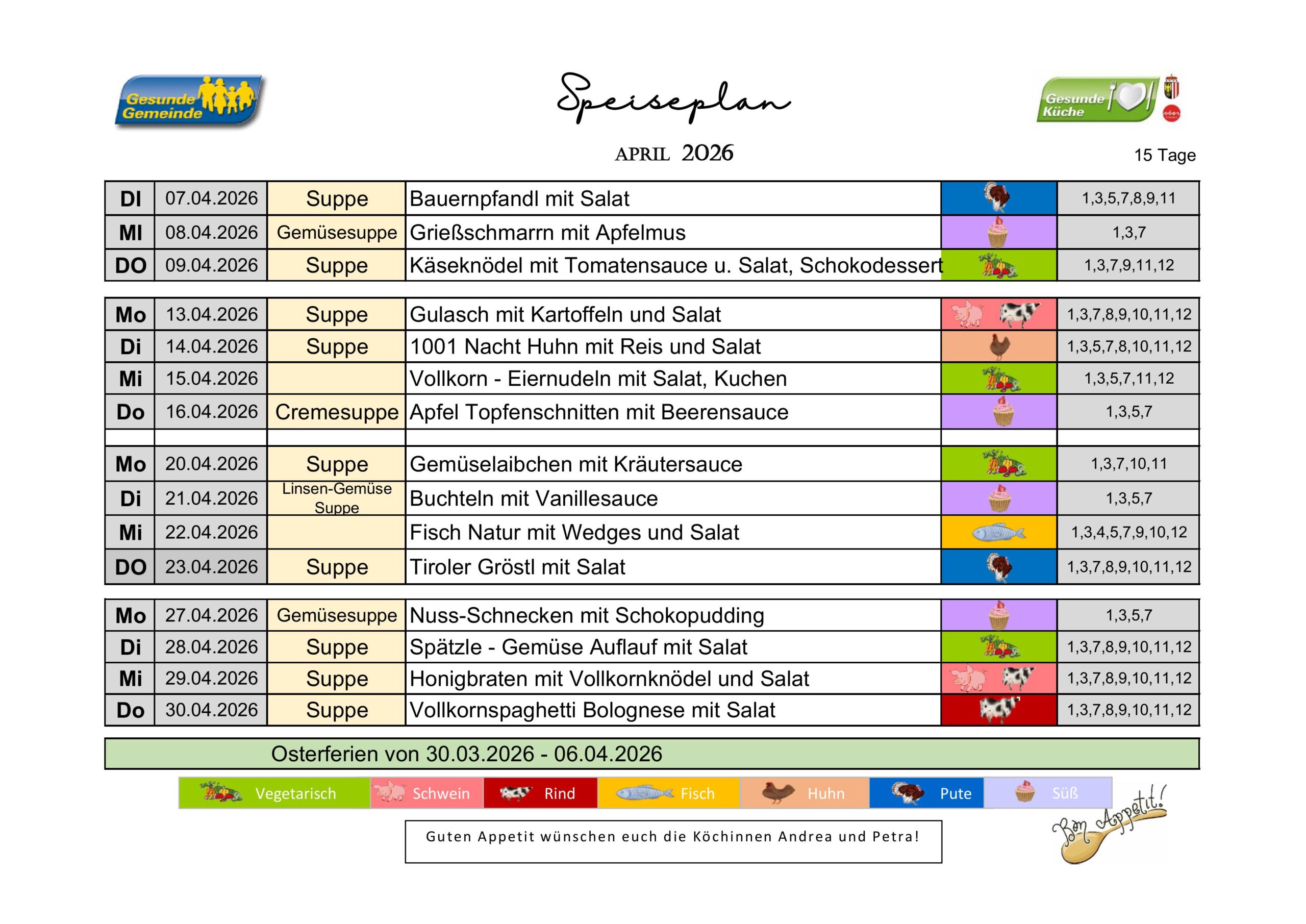 Unsere Ausspeisung bietet Montag bis Donnerstag frisch zubereitete und ausgewogene Mahlzeiten an. Mit einer abwechslungsreichen Auswahl an gesunden Gerichten, darunter vegetarische Optionen, sorgen wir für das Wohlbefinden und die Gesundheit unserer Schüler/innen.
