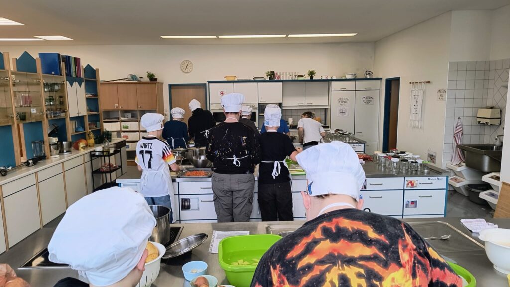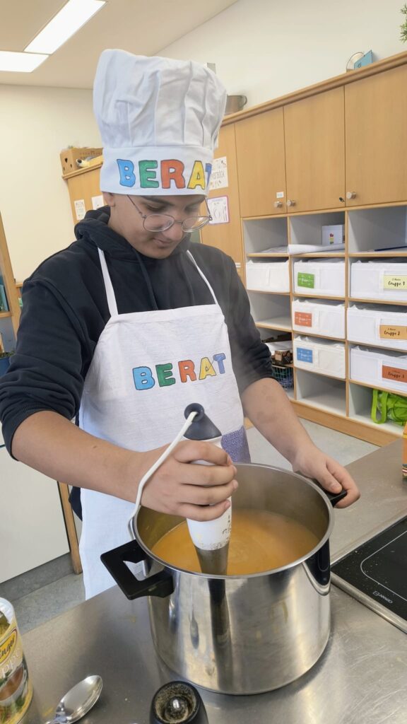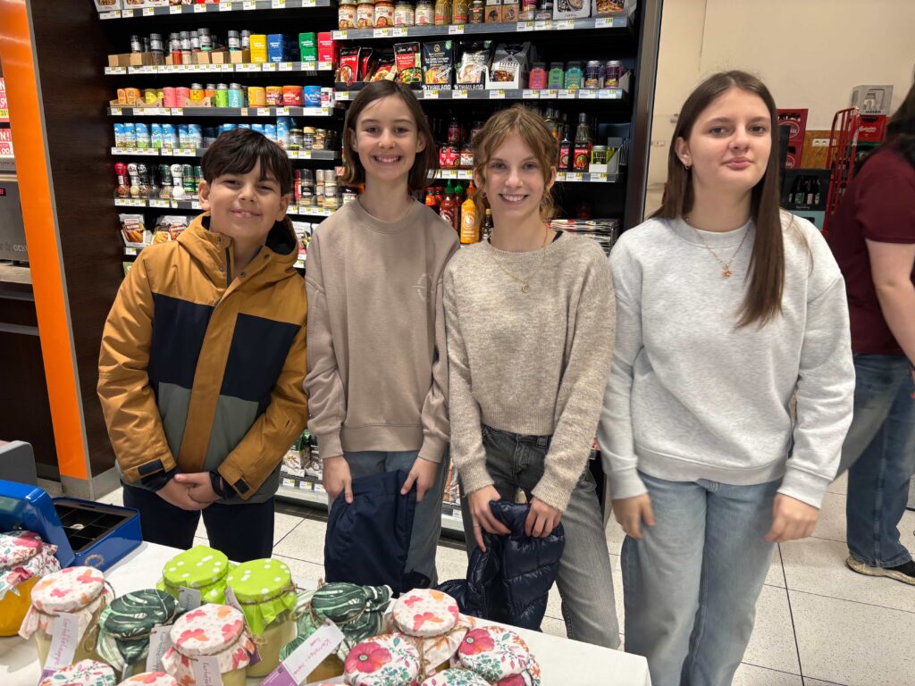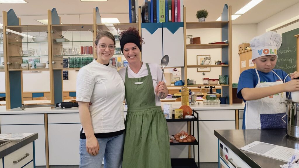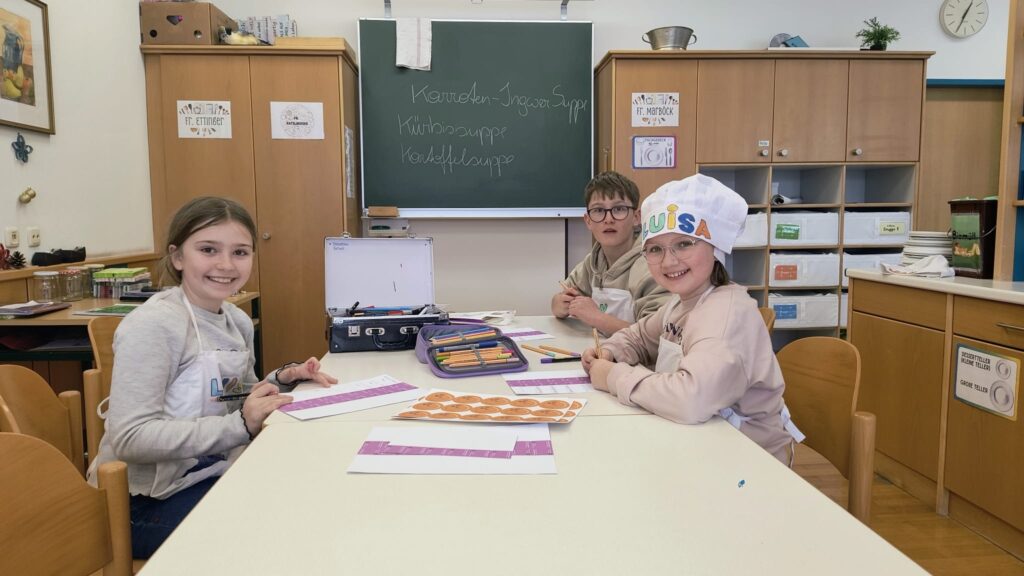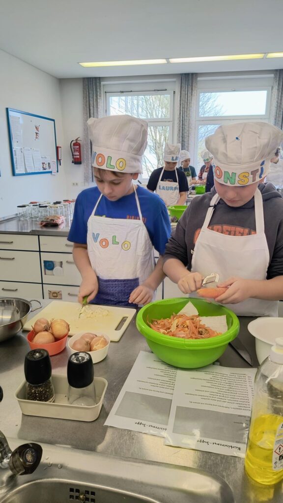 Im Rahmen des Kochunterrichts bereiteten Schüler:innen der zweiten Klassen drei Gemüsesuppen zu, die sie am Mittwoch, dem 25. Februar, im SPAR-Supermarkt Mairhuber in Gläsern verkauften: Insgesamt gingen 60 Gläser mit ¼ bzw. ½ Liter Inhalt über den Verkaufstisch und brachten einen Reinerlös von 292,42 € ein, der durch die Aktion FAIRPLAY des Landes OÖ auf 585 € verdoppelt wird.